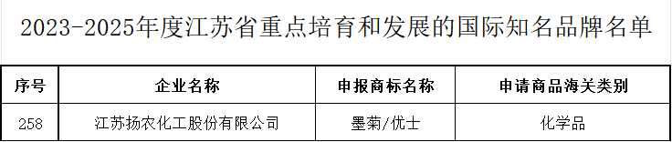 克日,,,,,,,江苏省商务厅宣布《2023-2025年度江苏省重点培育和生长的国际着名品牌名单》,,,,,,,博源国际(中国)欢迎您!化工“墨菊”“优士”品牌再次入选。。。。。这也是自2007年以来,,,,,,,博源国际(中国)欢迎您!化工“墨菊”品牌第七次、“优士”品牌第二次入选该榜单。。。。。