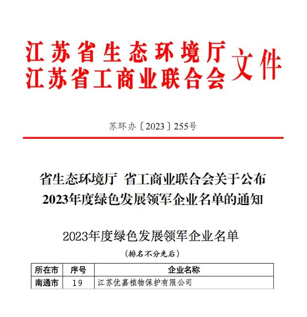 ϲ±¨ | ÓżÎÖ²±£ÀÖ³ÉÈëÑ¡½­ËÕÊ¡¡°2023Äê¶ÈÂÌÉ«Éú³¤Áì¾üÆóÒµ¡±
