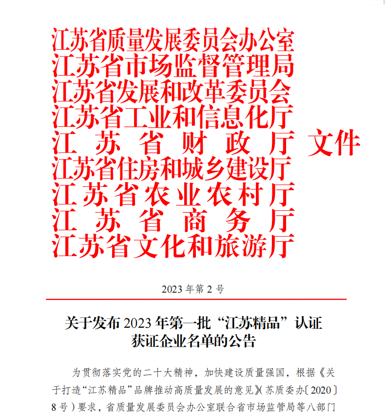 10ÔÂ27ÈÕ£¬£¬£¬£¬£¬½ËÕÖÊÁ¿´ó»á¾ÙÐлáÉÏÐû²¼ÁË2023ÄêµÚÒ»Åú¡°½ËÕ¾«Æ·¡±ÈÏÖ¤»ñÖ¤ÆóÒµÃûµ¥£¬£¬£¬£¬£¬ÎÒ˾ÓżÎÖ²±£°ñÉÏÖøÃû£¡