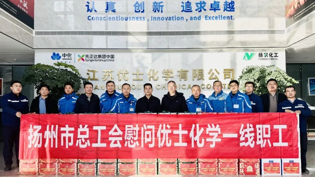 ? ? ? ?1月16日,,,,,,,扬州市总工会副主席韩士军一行来到博源国际(中国)欢迎您!股份优士化学开展春节慰问运动,,,,,,,博源国际(中国)欢迎您!股份工会主席张庆平、优士化学副总司理苏恩鹏等向导加入了慰问运动。。。。。。。。