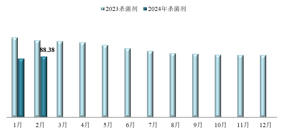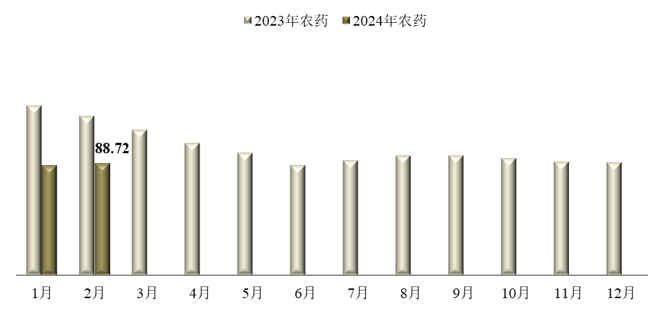 ? ? ? ?2月,,,,,,,,中国农药价钱指数止跌上扬。。。。。。据中国农药工业协会统计,,,,,,,,2月农药价钱指数(CAPI)为88.72,,,,,,,,环比上涨2.13%,,,,,,,,同比下跌30.09%。。。。。。